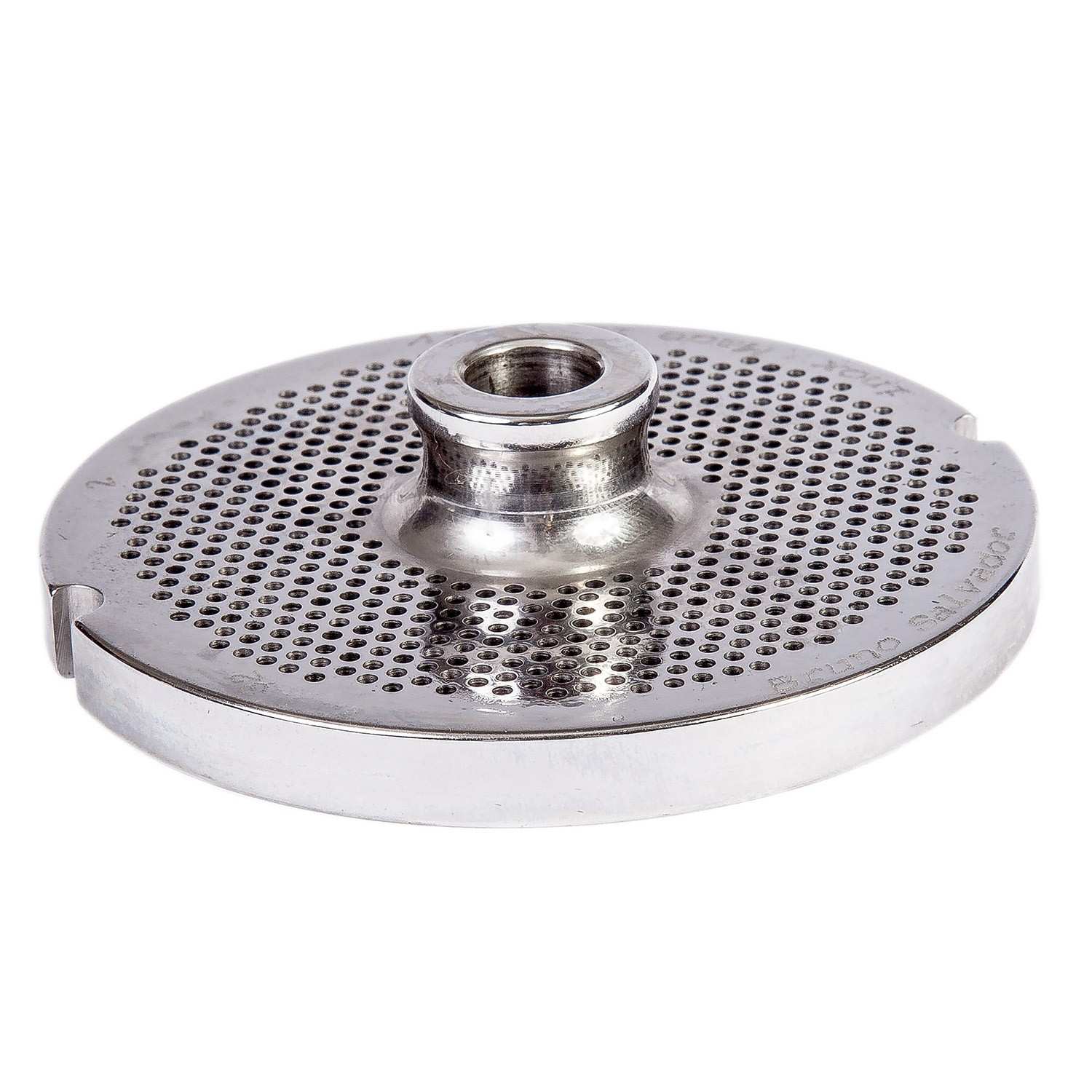 Piastra inox foro 2mm T32. Piastra e coltello tritacarne inox autoaffilante. L'acciaio inox speciale, il tipo di affilatura, di finitura e il perfetto adattamento tra il coltello e la piastra: sono le qualità che consentono al tritacarne di tagliare autoaffilandosi senza continue operazioni di affilatura degli elementi.