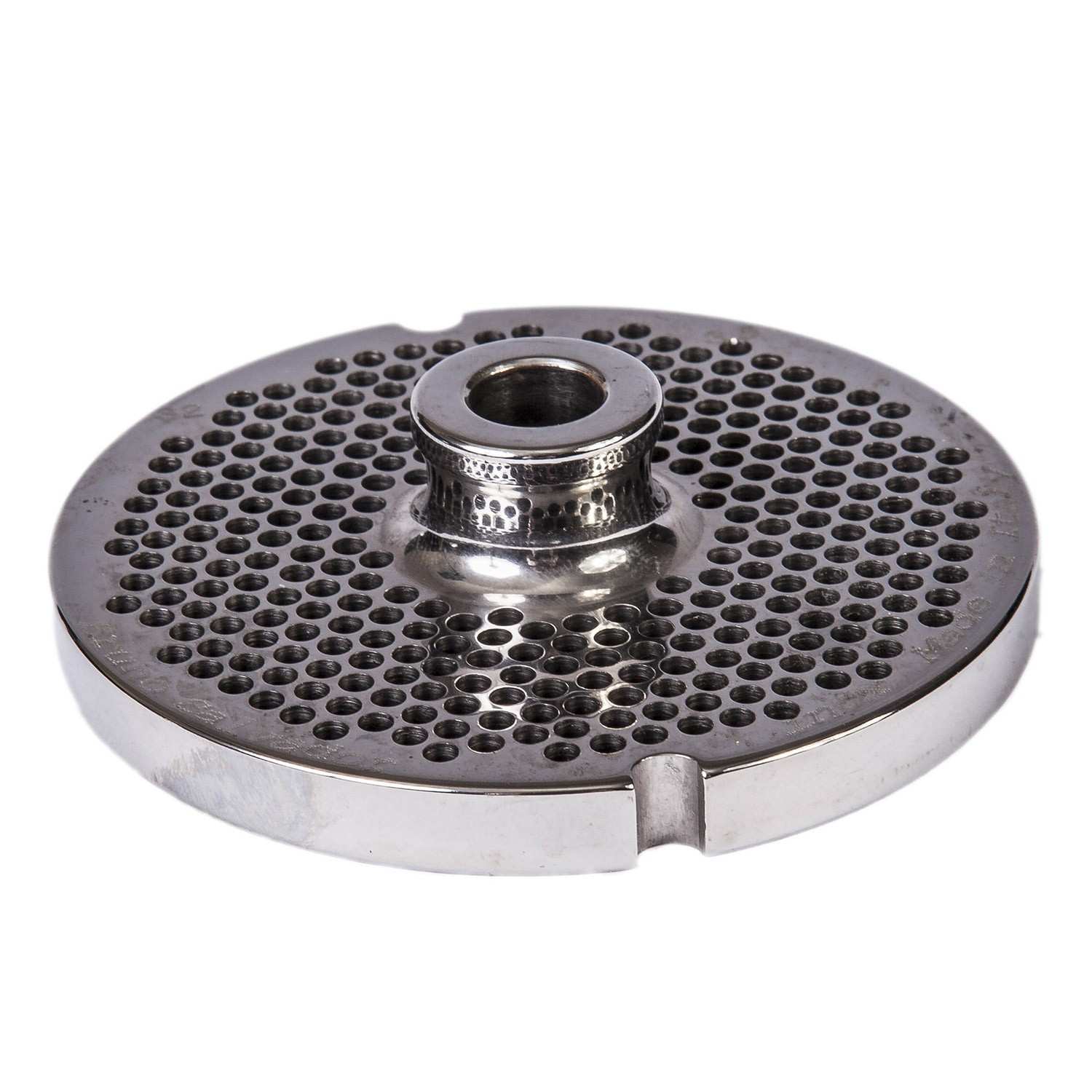 Piastra inox foro 3,5mm T32. Piastra e coltello tritacarne inox autoaffilante. L'acciaio inox speciale, il tipo di affilatura, di finitura e il perfetto adattamento tra il coltello e la piastra: sono le qualità che consentono al tritacarne di tagliare autoaffilandosi senza continue operazioni di affilatura degli elementi.