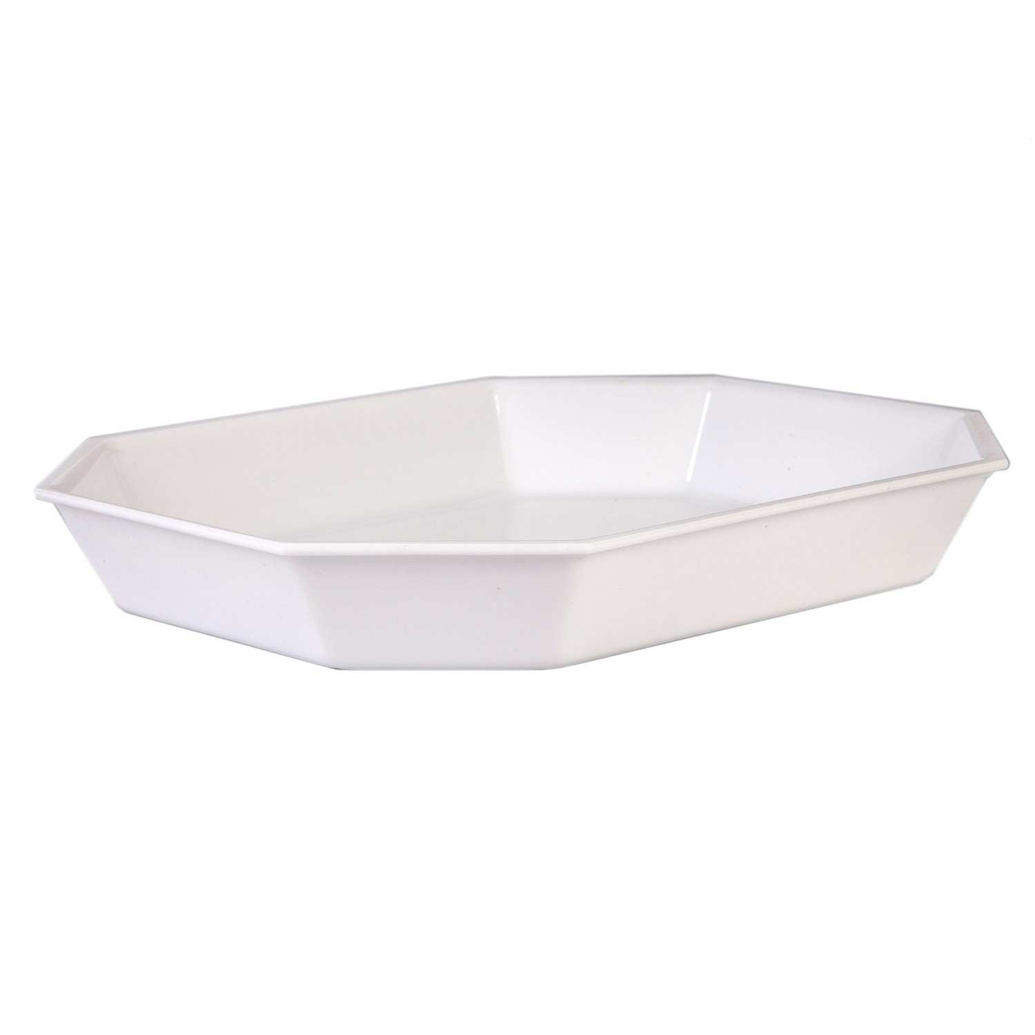 Vassoio ottagonale GN 1/2 h45mm dimensioni 325 x 265 x h45mm. Gastronorm è un sistema di misure utilizzato nella ristorazione, regolamentato dalla norma EN 631.Contenitori, bacinelle, vasche, vassoi, teglie professionali in misure universali e in materiali idonei per cottura, conservazione, esposizione e trasporto, compresi acciaio e policarbonato.Gli articoli sono disponibili in tre altezze, differendo in forma, capacità e dimensione dei bordi, favorendo un impilamento agevole. Grazie ai piedistalli è possibile aumentare la visibilità della merce esposta. Disponibile nei colori: bianco e nero.